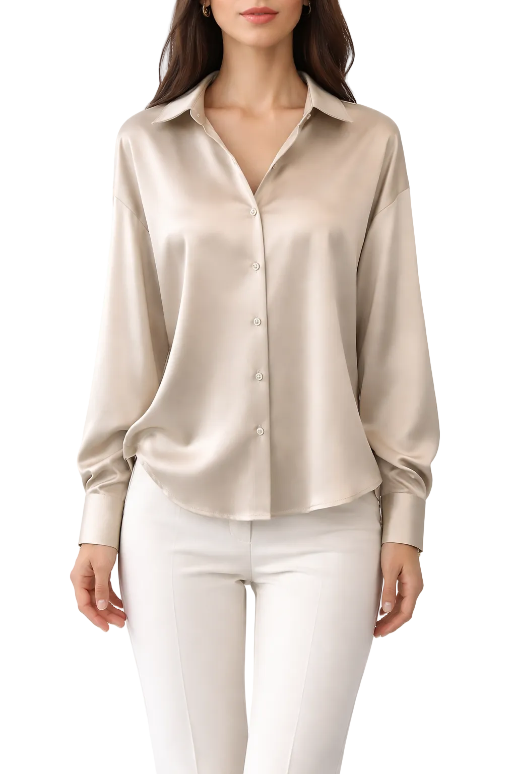 Women's Button Down Long Sleeve Silk Blouse with Collar