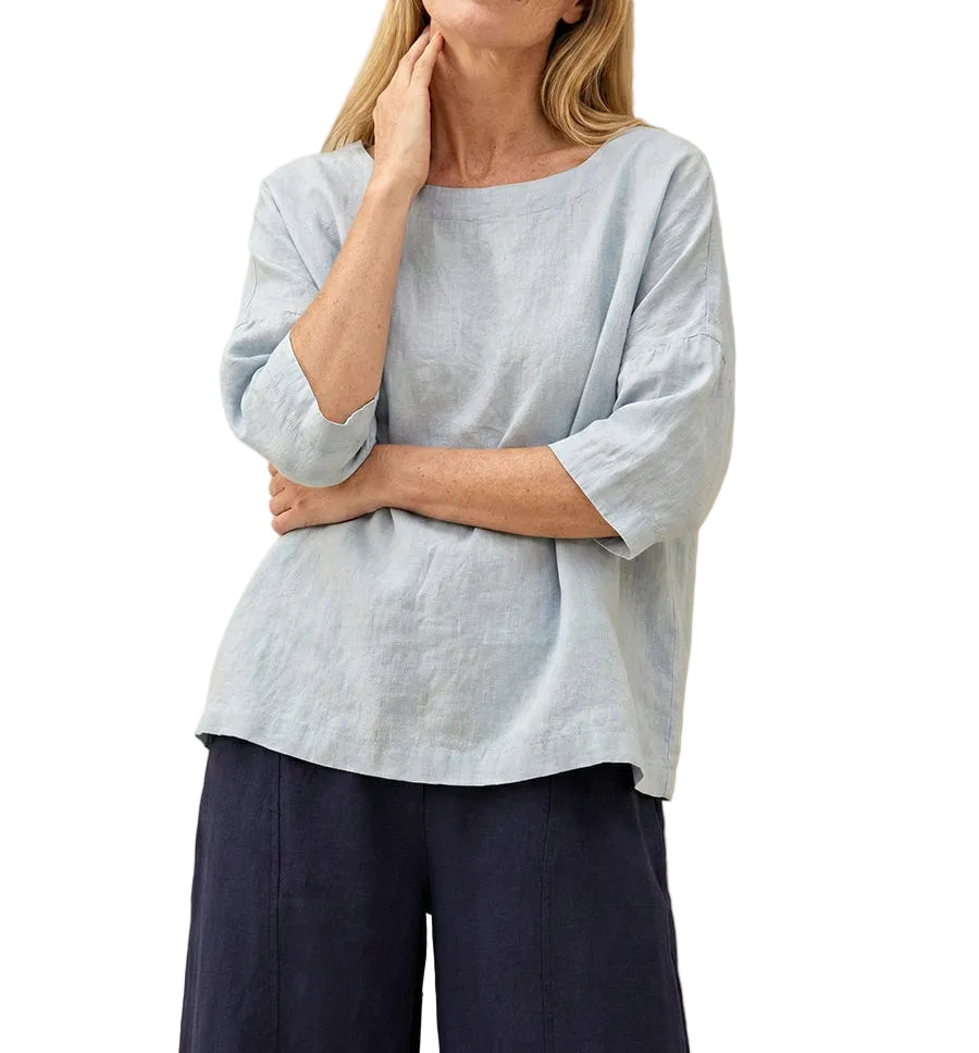 Women's Round Neck Loose Three Quarter Sleeve Blouse