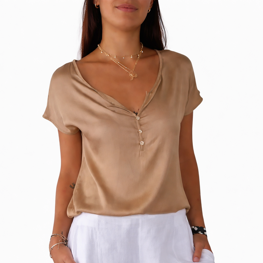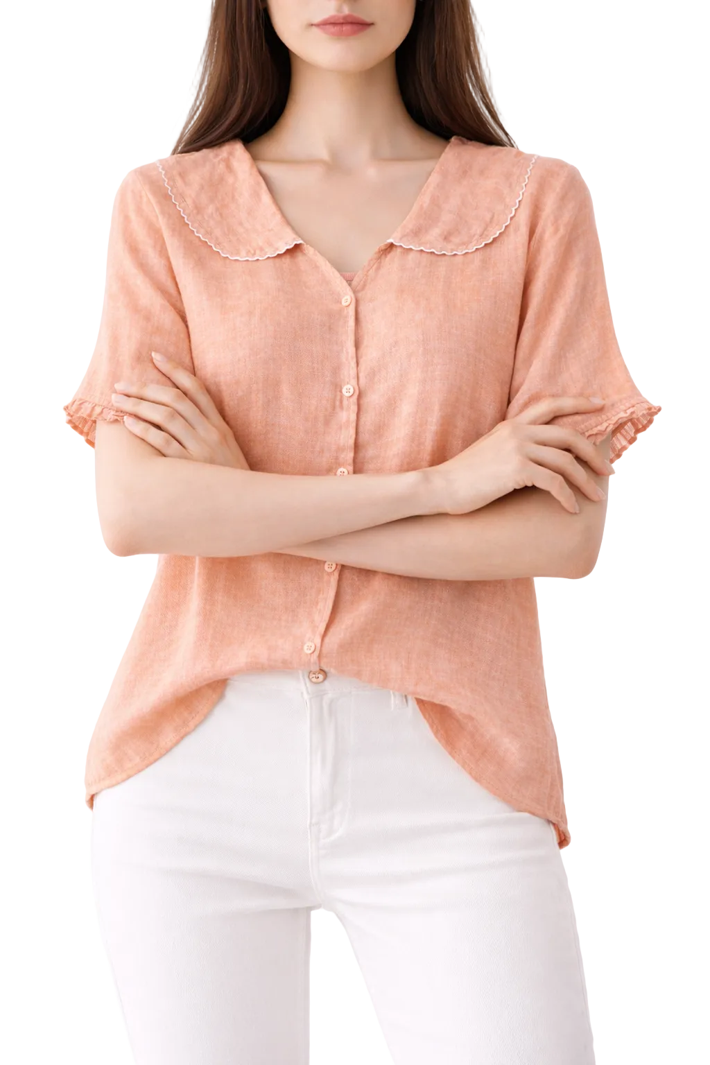 Women's Short Sleeve Blouse with Collar Neck and Front Buttons
