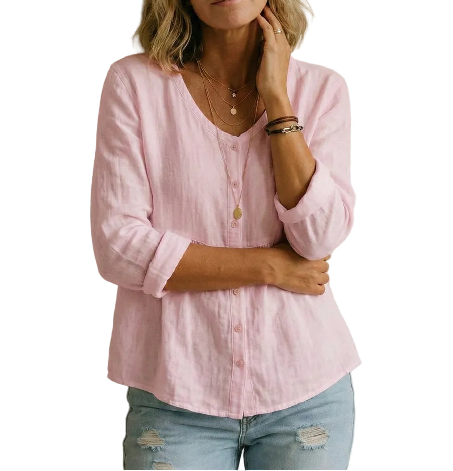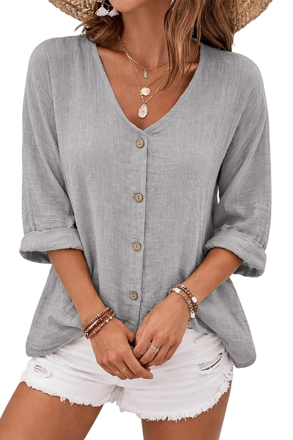 Women's Three Quarter Sleeve Button Blouse with V Neck