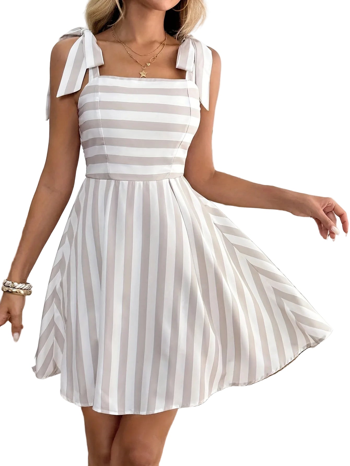 Women’s Sleeveless Striped Mini Dress with Tie Straps