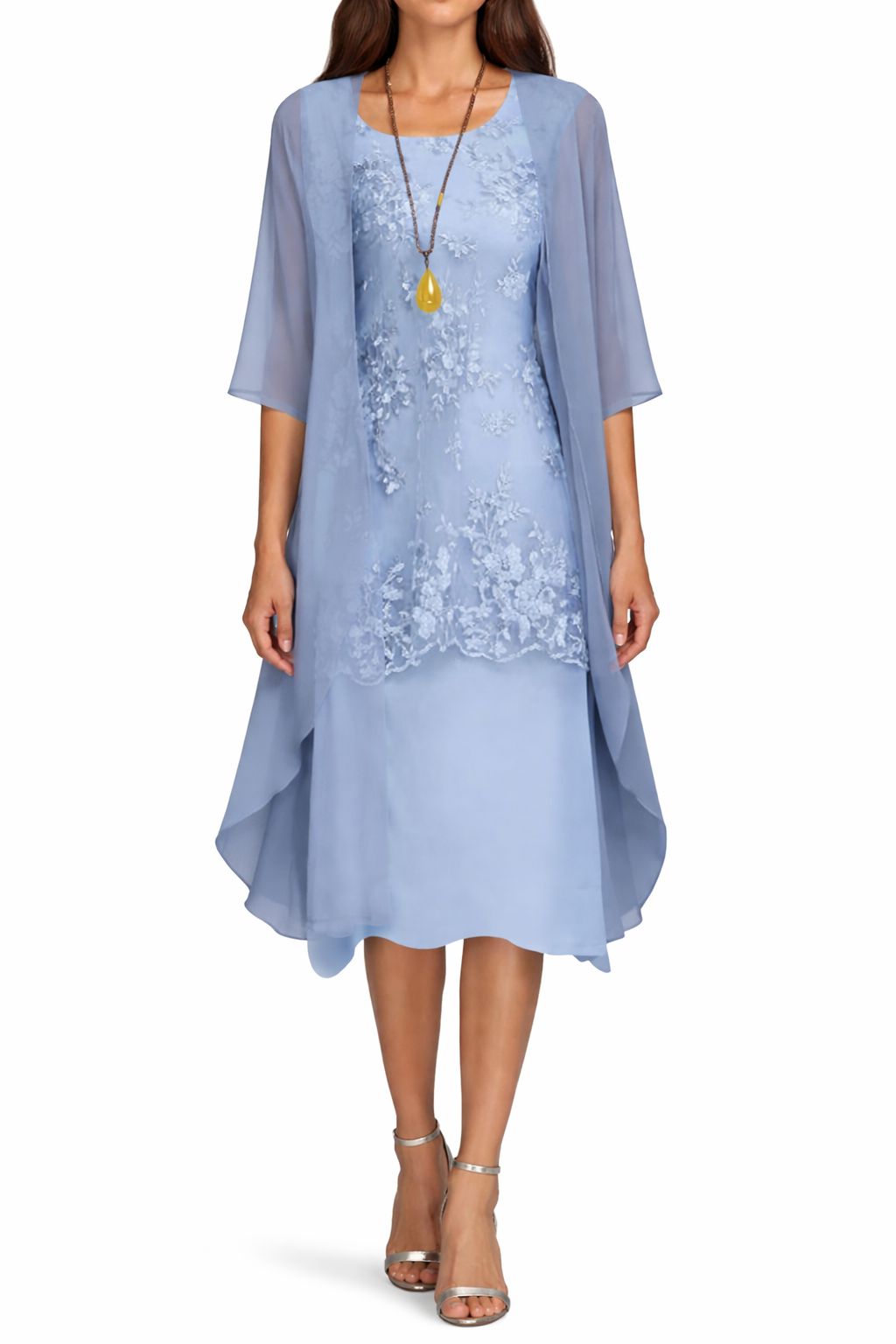 Women's Floral Midi Dress with Open Front Cover Up Layer