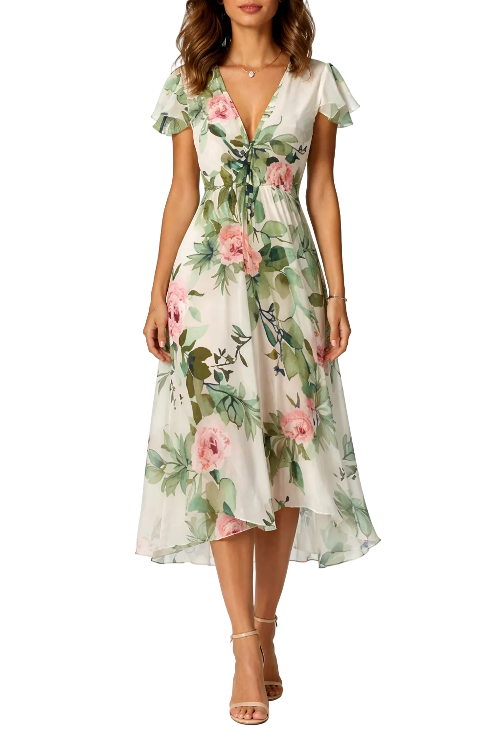 Women's Floral V Neck Short Sleeve Midi Dress