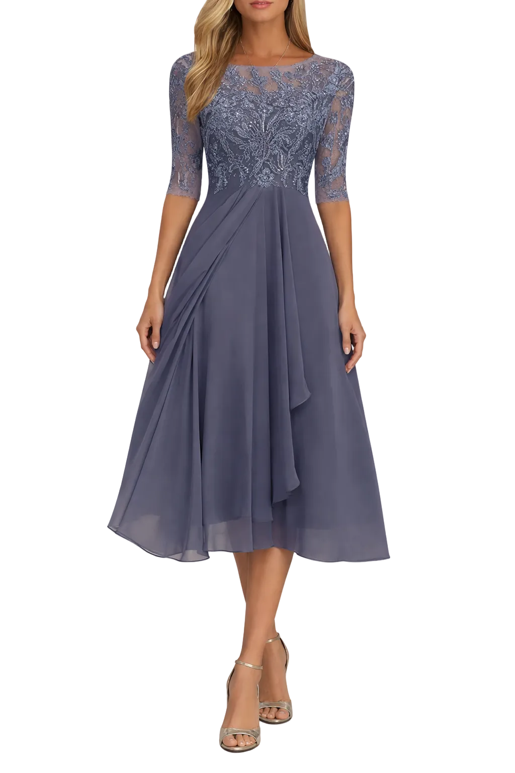Women's Lace Midi Dress with Flow Skirt