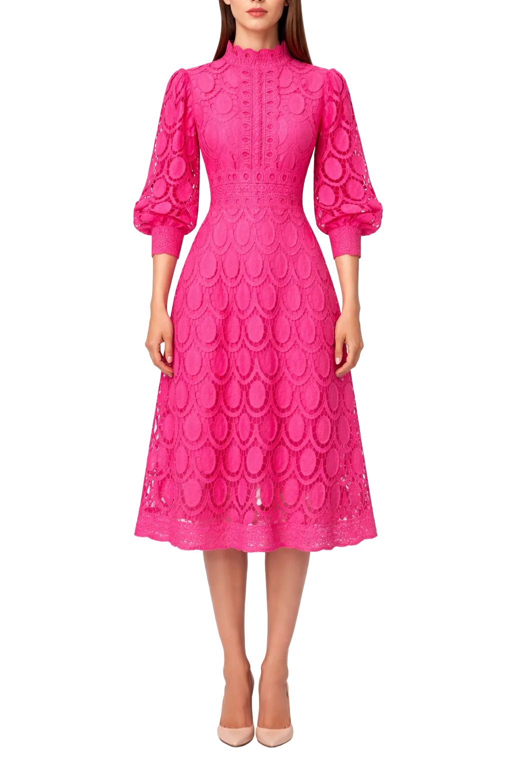 Women's Long Shaped Sleeve Lace Midi Dress