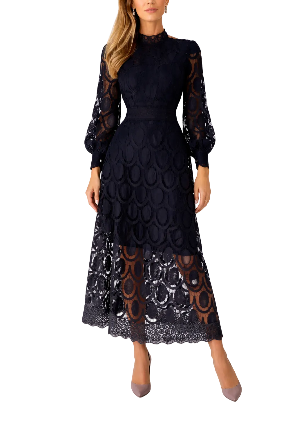 Women's Long Sleeve High Neck Lace Dress