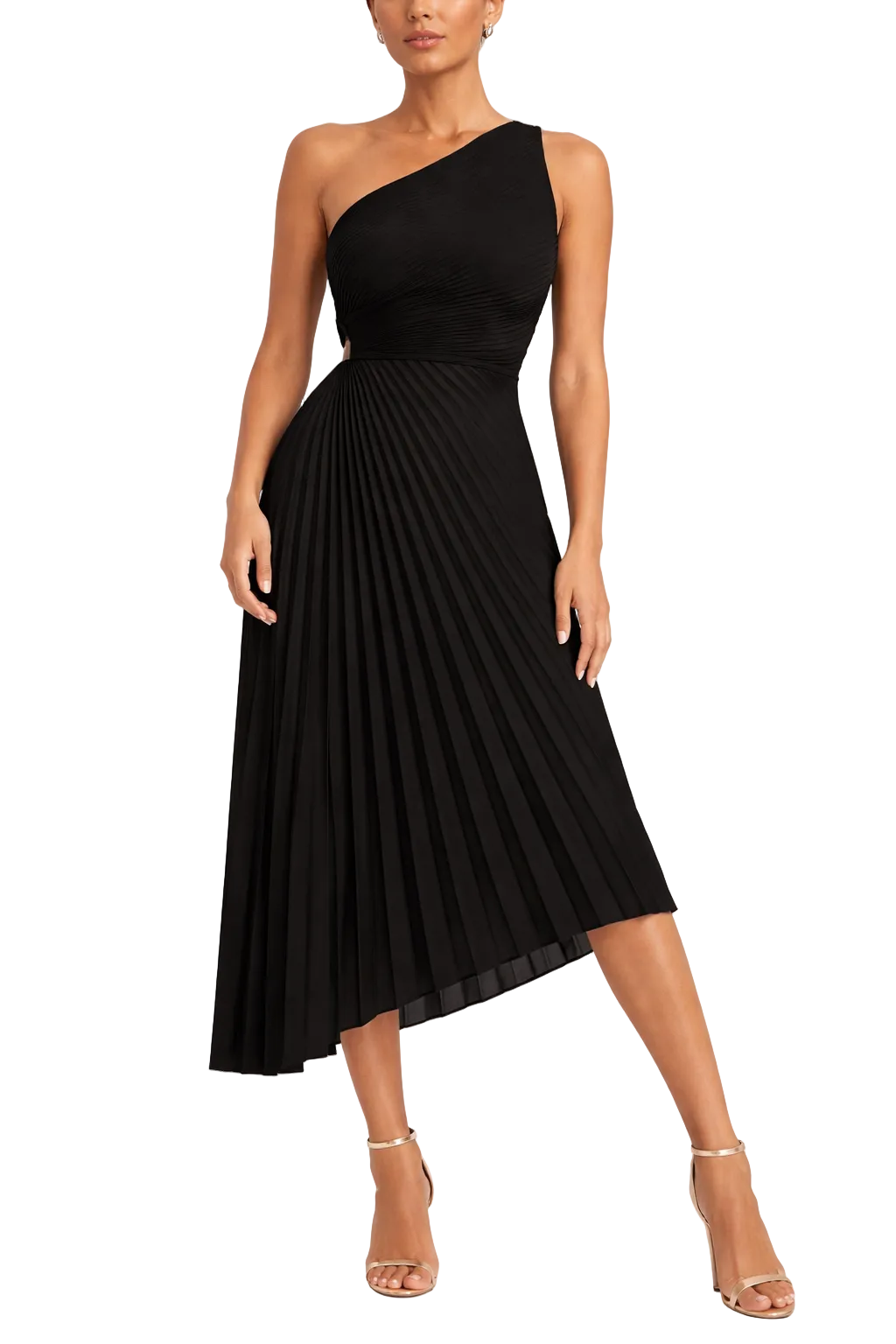 Women's One Shoulder Pleated Asymmetrical Midi Dress