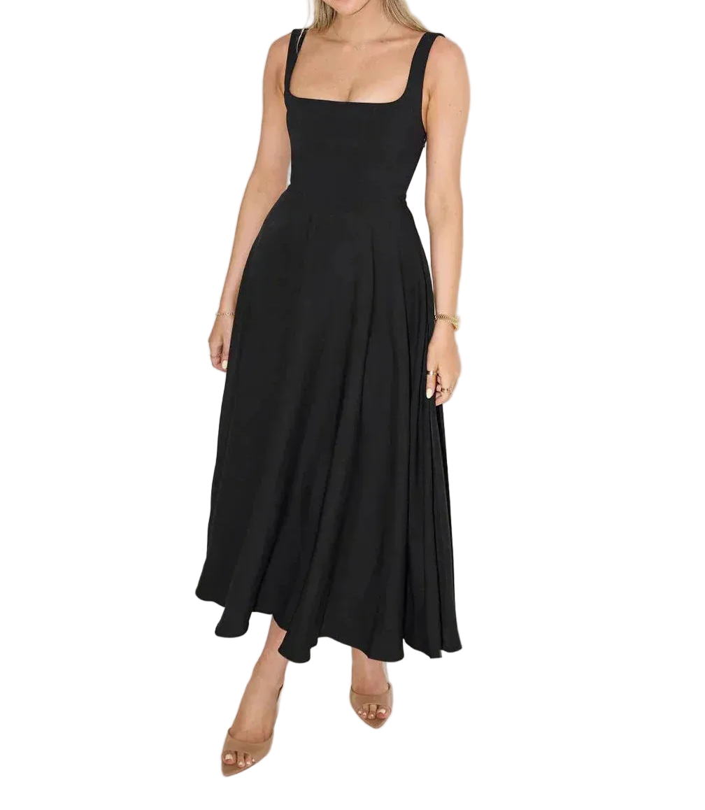 Women's Sleeveless Square Neck Midi Dress with Flared Skirt
