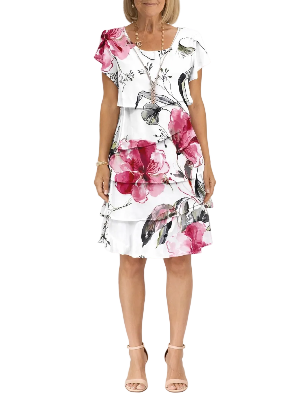 Women's Short Sleeve Layered Midi Dress