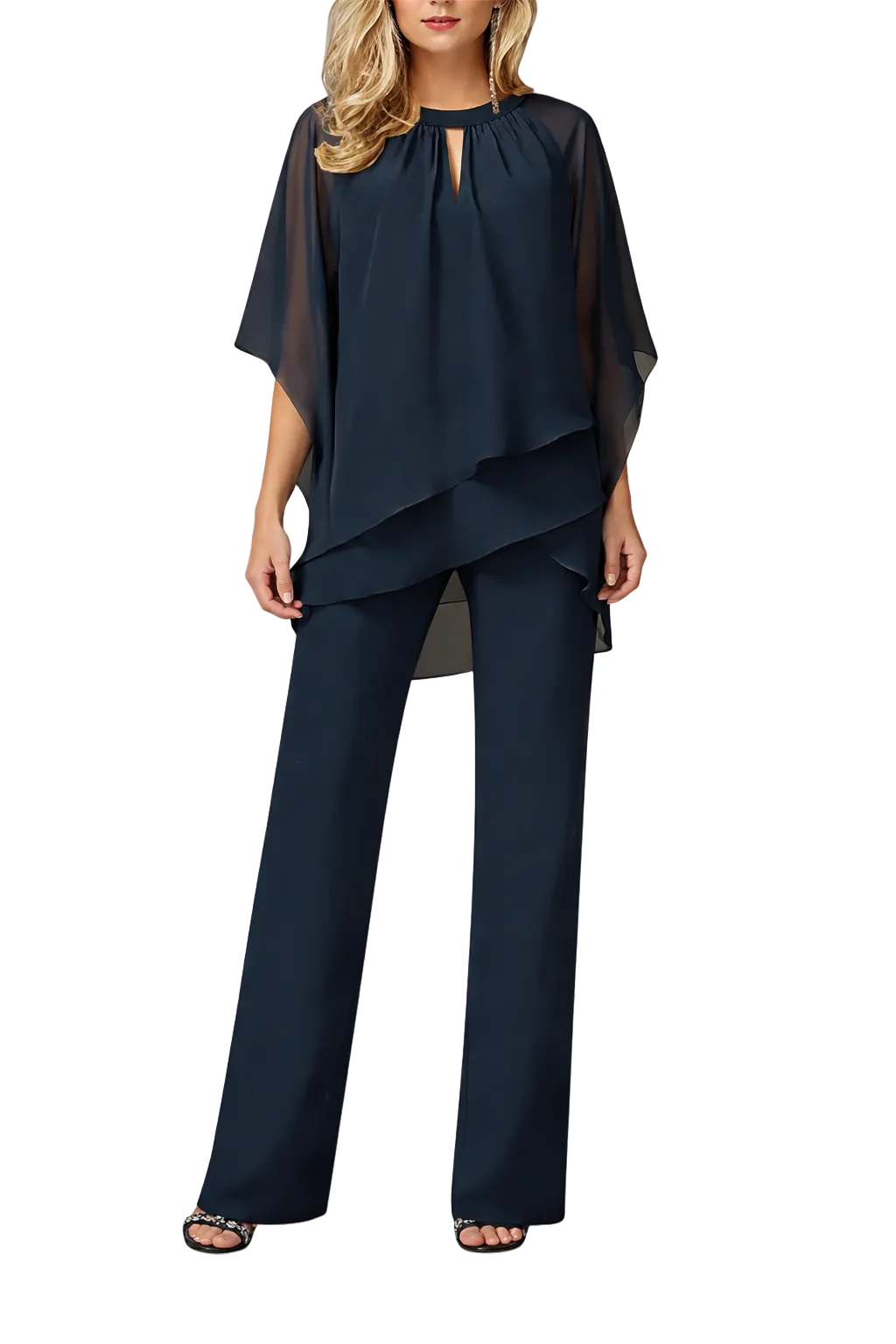 Women's Chiffon Overlay Top and Wide Leg Pants Set
