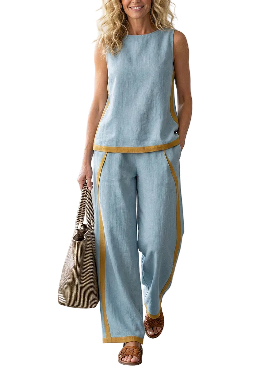 Women's Sleeveless Top and Straight Leg Pants Two Piece Outfit