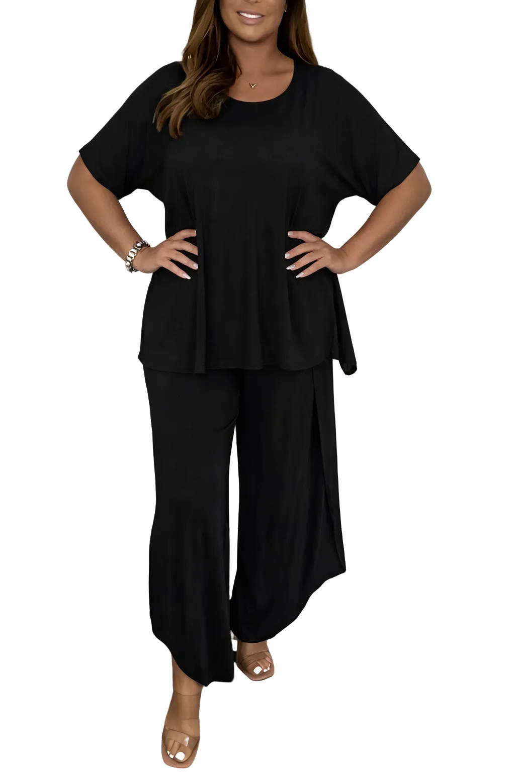 Women's Two Piece Set with Short Sleeve Top and Wide Leg Pants